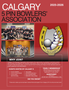 - Access to more tournaments – Calgary 5 Pin offers exclusive zone tournaments (IP; Open Trials) for all adult ages and skill levels plus Youth Challenge for 13-18 yr olds.