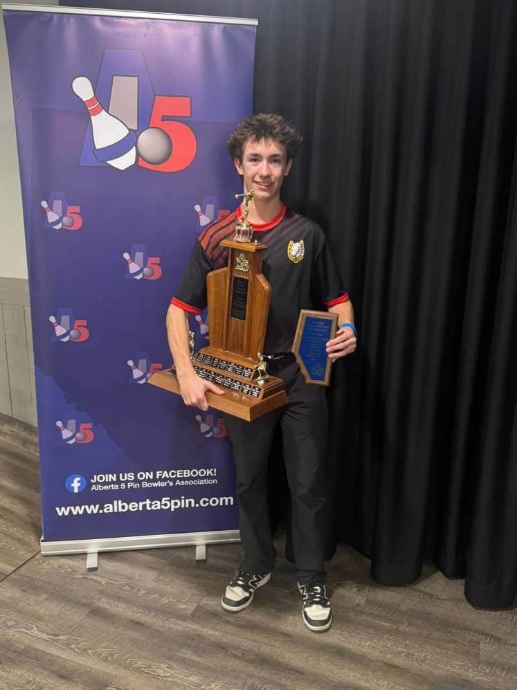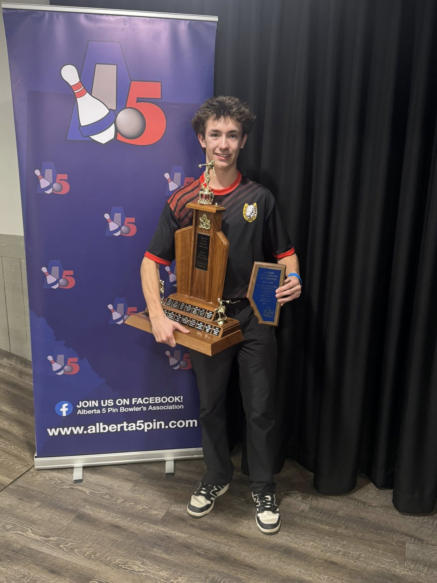 Dylan Godard was the high scratch bowler for the boys, averaging 244.3, winning Gold Medal, $1000 scholarship and will be representing Alberta at the Nationals in Edmonton March 25-28.